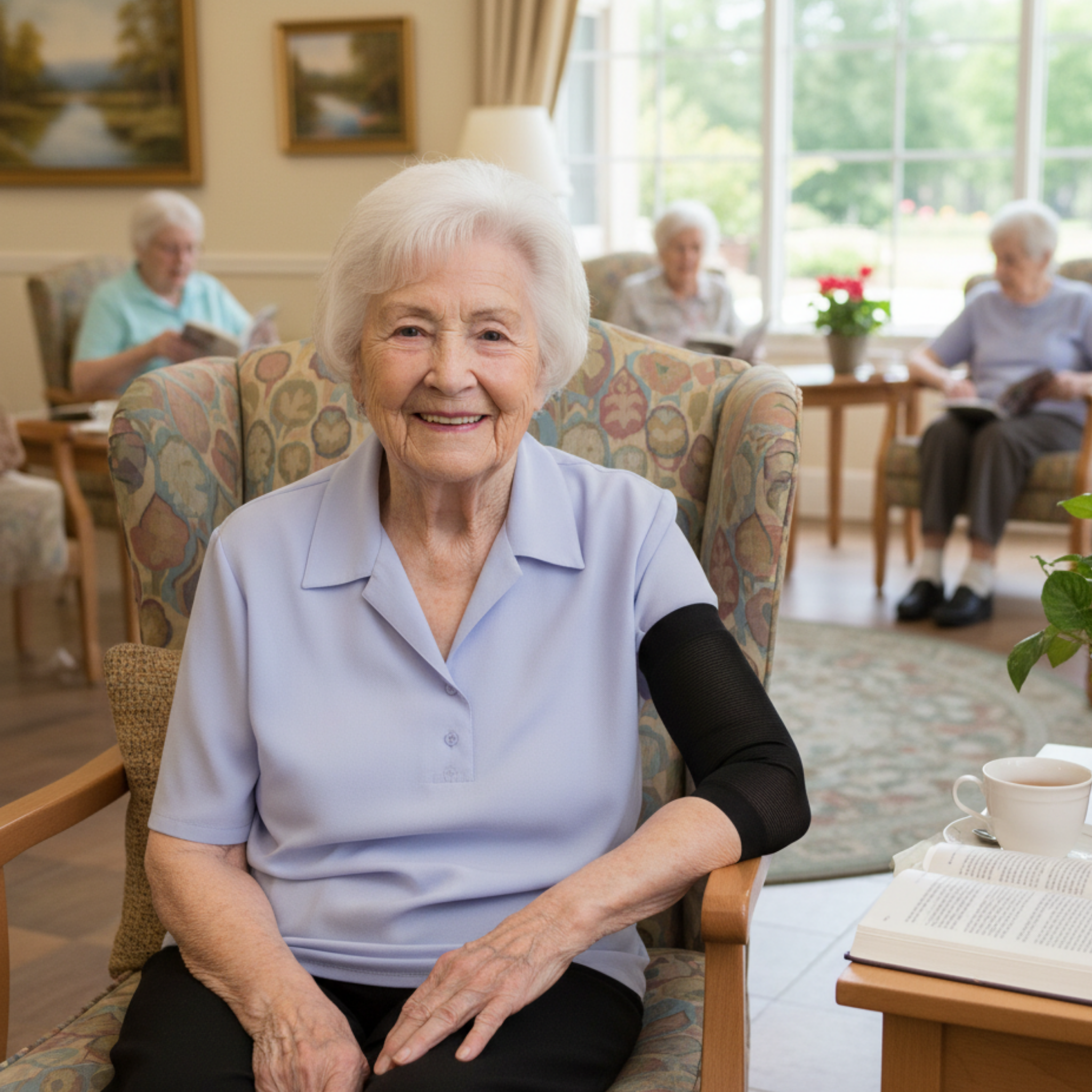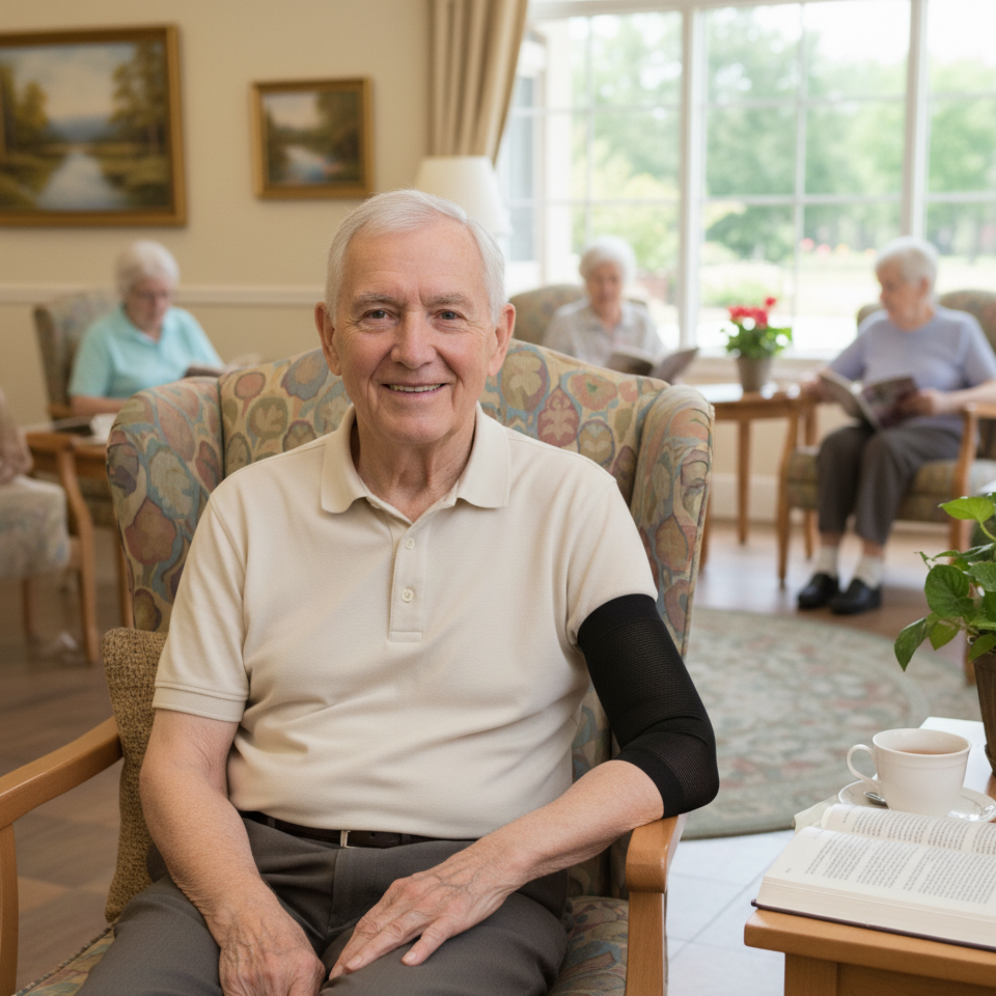 Es especialmente útil en personas que tienden a retirar o manipular las curas sin darse cuenta, como ocurre en situaciones de desorientación, deterioro cognitivo o demencia. Su diseño suave y elástico se ajusta al brazo sin apretar, proporcionando una cobertura uniforme y discreta que protege la zona sin generar molestias.